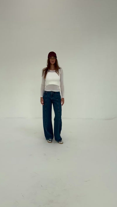 Nowy model spodni jeansowych damskich o lekko rozszerzanym kroju, który subtelnie wydłuża sylwetkę i zapewnia swobodę ruchów. Ozdobne szwy biegnące wzdłuż nogawek podkreślają linię nóg, a klasyczny, niebieski denim sprawia, że to model na wiele sezonów.