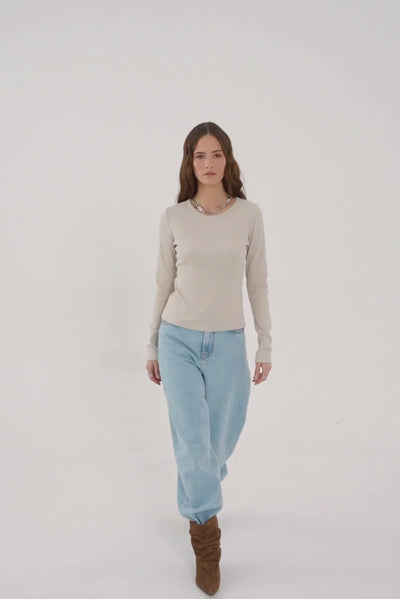 Wasz ulubiony basic, longsleeve bamboo powraca w nowych kolorach: lilac i taupe. Wykonany z miękkiej, przyjemnej dla skóry, prążkowanej dzianiny bambusowej, jest perfekcyjnym longsleevem na lata. Dopasowany fason z lekko wydłużonymi rękawami i niewielkim, okrągłym dekoltem wykończonym pliską świetnie leży na sylwetce, zapewniając komfort noszenia. To idealna baza do niemal każdej stylizacji - noś go z jeansami, garniturowymi spodniami czy spódnicami. Sprawdzi się pod bluzę, kurtkę lub sweter, a także solo jako minimalistyczny, codzienny element garderoby.