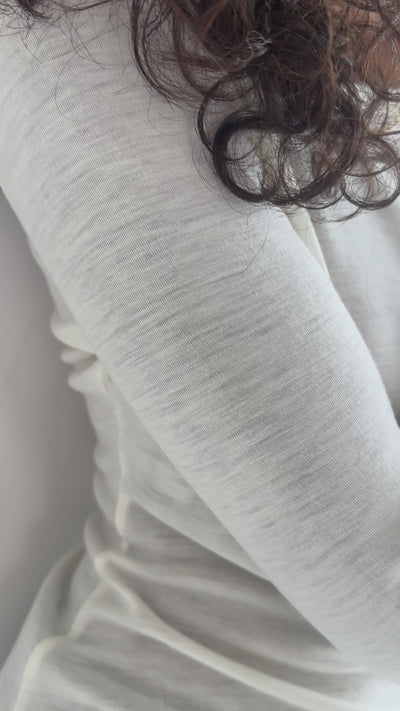 Klasyczny, basicowy, leciutki longsleeve. Wykonany w 100% z wełny merino, zapewnia termoregulację i ochronę przed zimnem. Fason o dopasowanym kroju z lekko wydłużonym rękawem oraz niewielkim, okrągłym dekoltem wykończonym pliską. Jeden z produktów, które stanowią idealną bazę do stworzenia niemalże każdej stylizacji. Noś go z jeansami, garniturówkami i spódnicami. Pod bluzę, płaszcz i sweter albo solo.