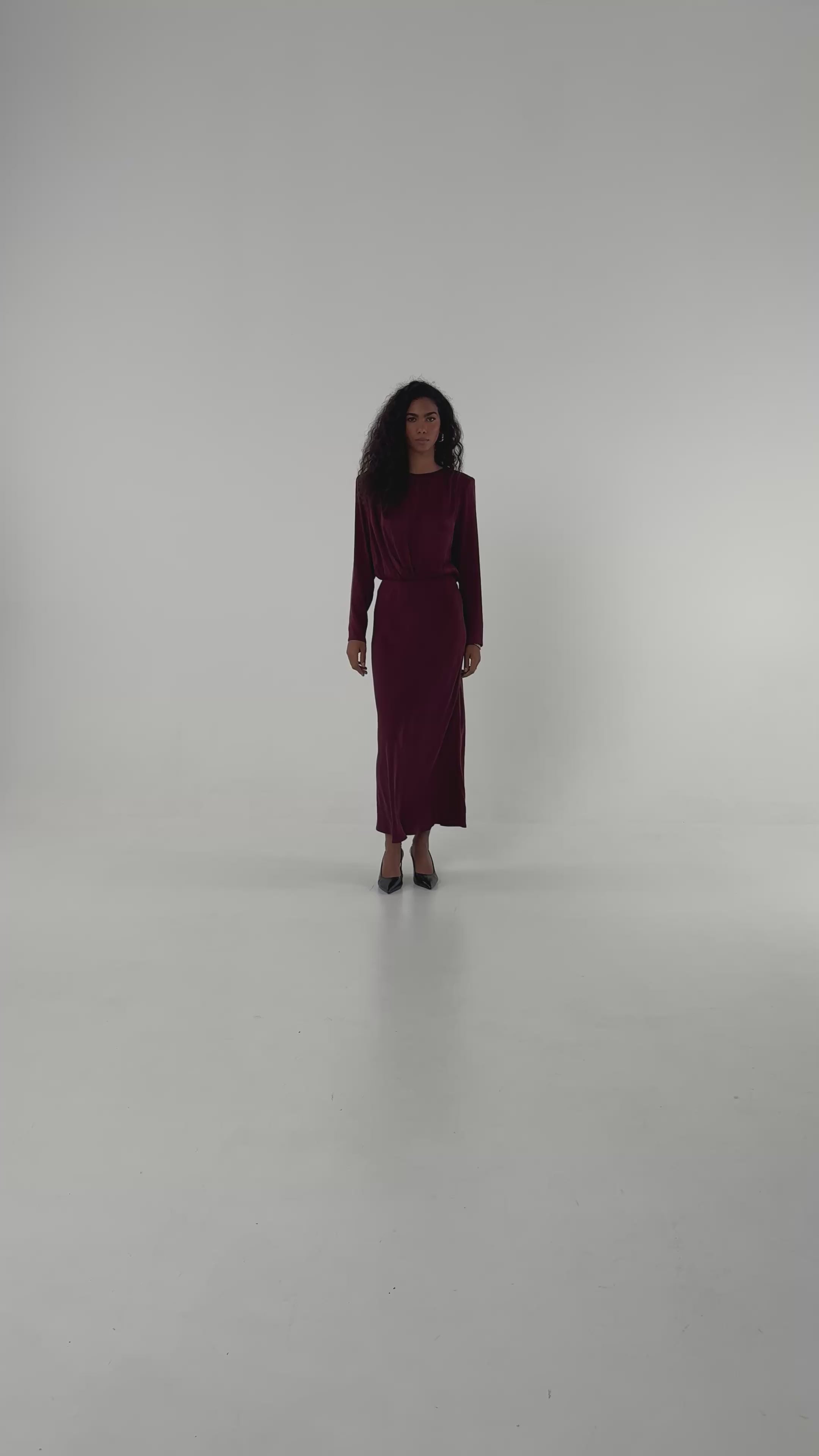 W talii wszyto gumkę, która zapewnia wygodę i dopasowanie, a poduszki w ramionach pięknie równoważą proporcje. Zmysłowe rozcięcie i drapowanie na plecach nadają sukience wyjątkowego charakteru. Dostępna w dwóch eleganckich kolorach – burgundy i taupe – idealnie sprawdzi się podczas świątecznych spotkań, kolacji firmowych czy innych uroczystych okazji, gwarantując spektakularny efekt bez wysiłku.