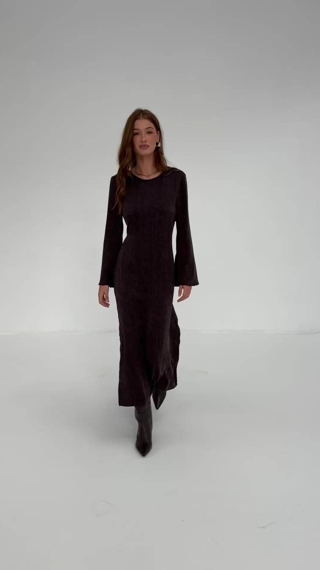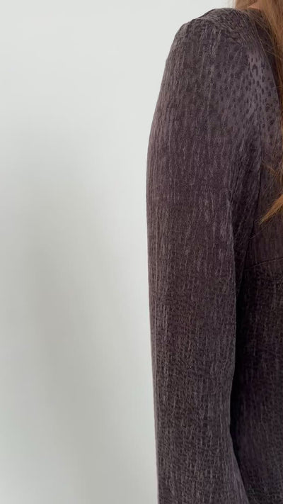 Oto kwintesencja prostoty i nowoczesnej kobiecości! Minimalistyczny krój w połączeniu z wyjątkową, żakardową tkaniną w nieregularne kropki sprawia, że przyciąga spojrzenia subtelnym blaskiem i oryginalną fakturą. Długość maxi i rozporki po bokach dodają lekkości oraz swobody ruchu, a długie, lekko rozszerzane rękawy nadają jej delikatnego, nonszalanckiego charakteru.
