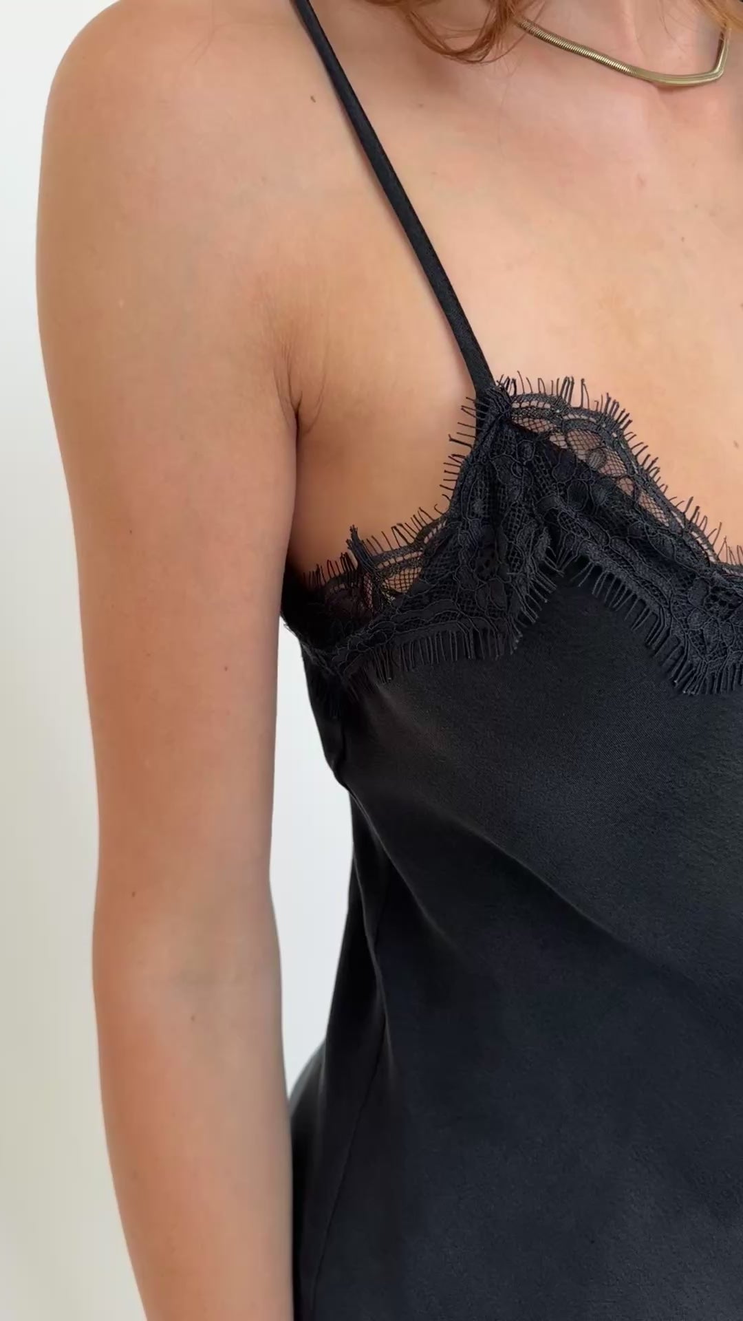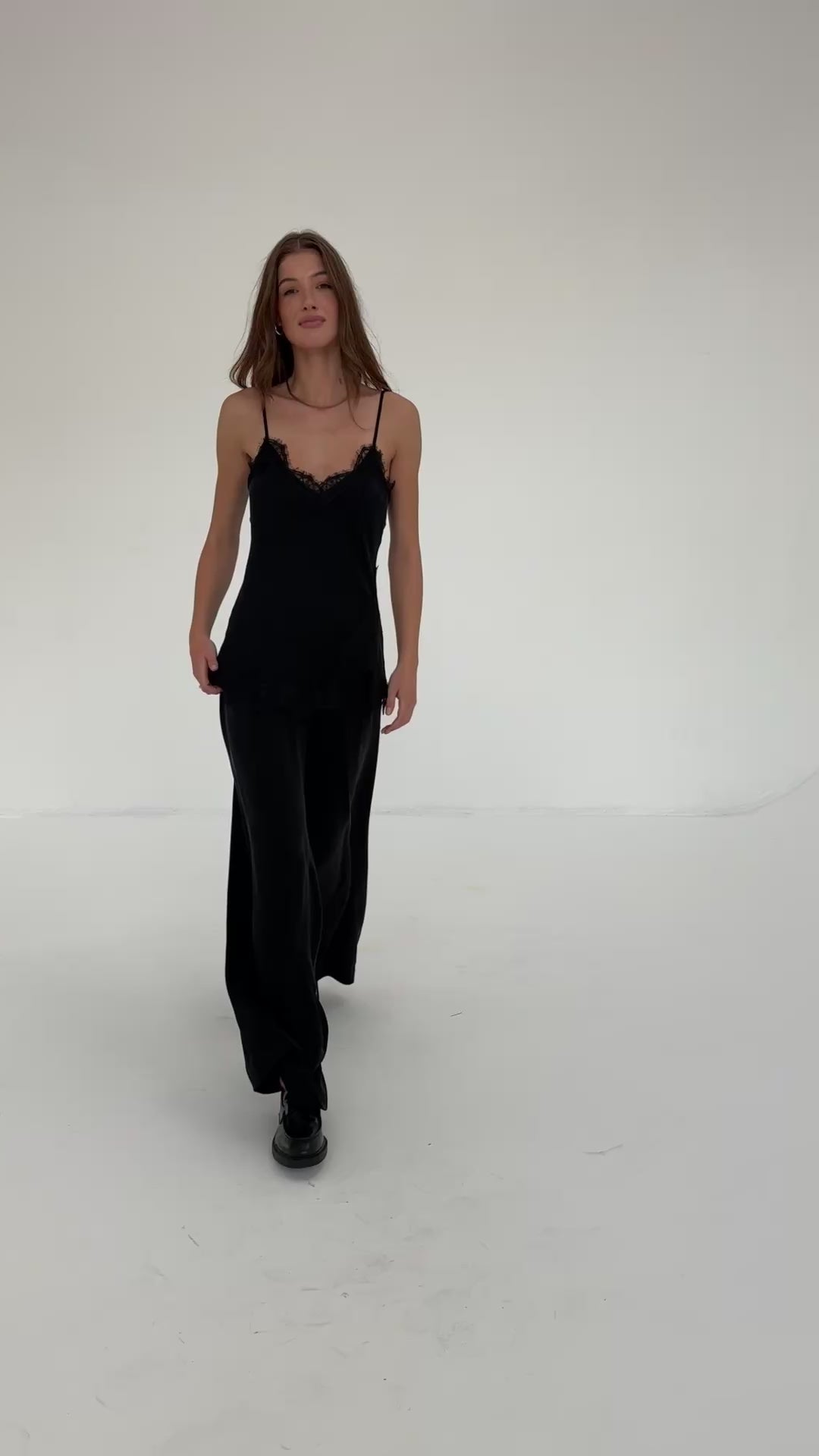 Koronkowy top Amy to kwintesencja kobiecości i subtelnej elegancji. Uszyty ze skosu z luksusowej tkaniny 100% cupro, delikatnie opływa sylwetkę i pięknie układa się na ciele. Ramiączka z metalowymi regulatorami umożliwiają idealne dopasowanie długości, a lekko wydłużony fason zapewnia efekt modnie wystającej koronki spod marynarki, swetra lub bluzy.